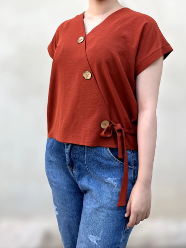 کراپ کت کتان ، رنگ آجری ،فری سایز ، فقط 355 هزار