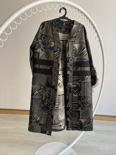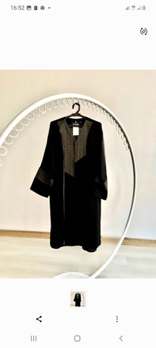 ناموجودمانتو مشکی سایز بزرگ،دکمه مخفی، خرجکار طلایی، شانتون اندونزی درجه یک