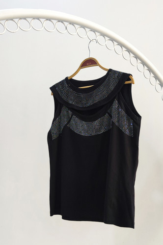 تیشرت نخ پنبه مشکی ، نگین کاری ،درجه یک ، فری سایز تا 48