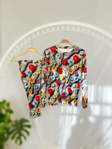 ست بلوز و شلوار مخمل روباهی ، زنانه، فری سایز تا سایز 46