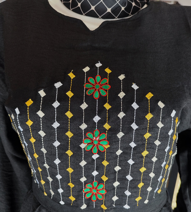 مانتو کفتان مشکی صوفیا گلدوزی شده ،تنخور عالی ،فری سایز از 38 تا 50