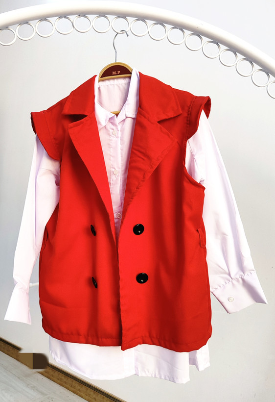 جزئیاتشومیز و ژیله ، فری سایز تا سایز 44 ، شومیز سفید و ژیله رنگبندی ،جنس ژیله کرپ اسکاجی ،ژیله تنها قیمت 255