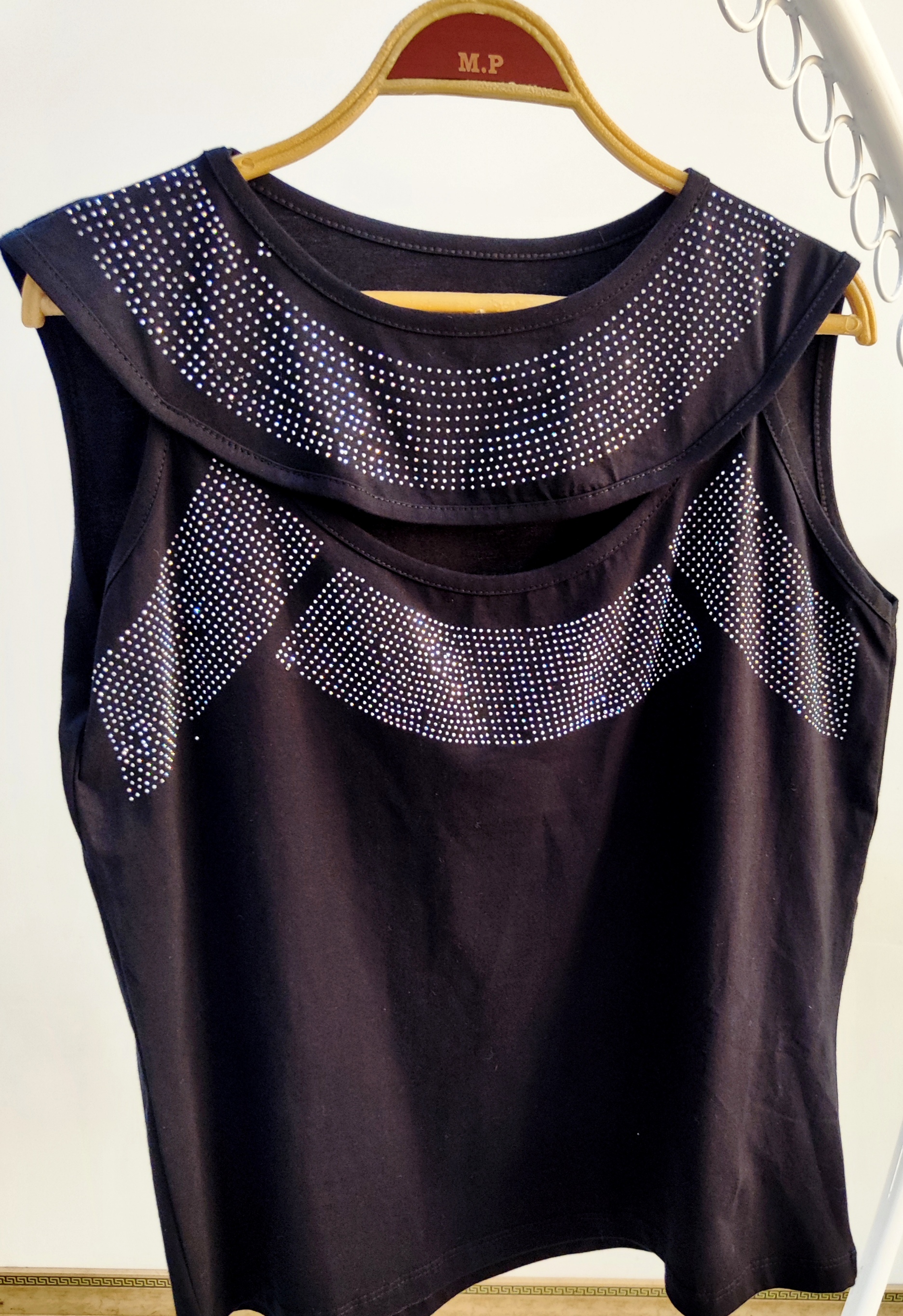 تیشرت نخ پنبه مشکی ، نگین کاری ،درجه یک ، فری سایز تا 48