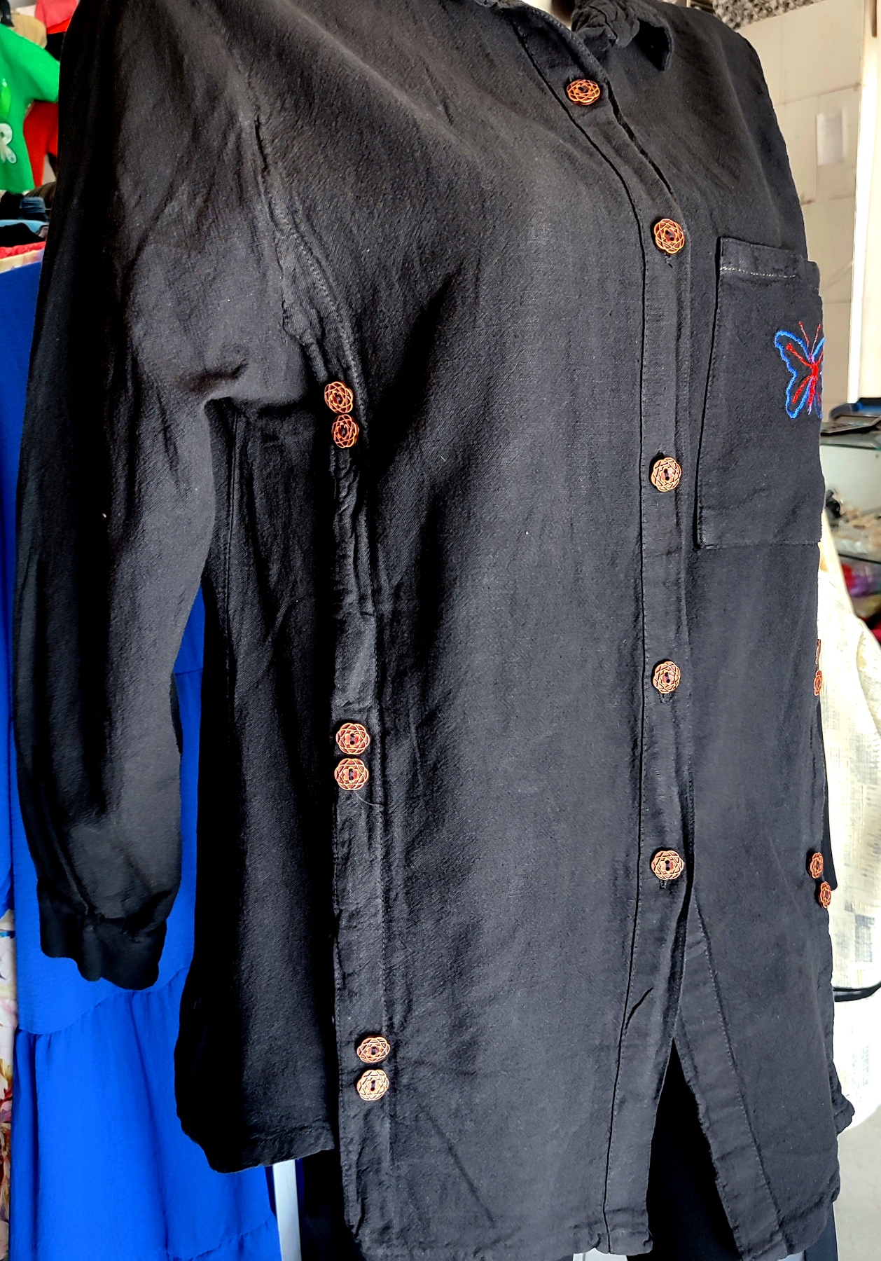 شومیز مشکی نخی ، متقال، درجه یک ،فری سایز 40 تا 46